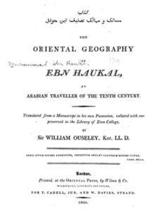- The Oriental Geography of Ebn Haukal, An Arabian Traveller of The Thenth Century, Sir William Ouseley, Londra, 1808